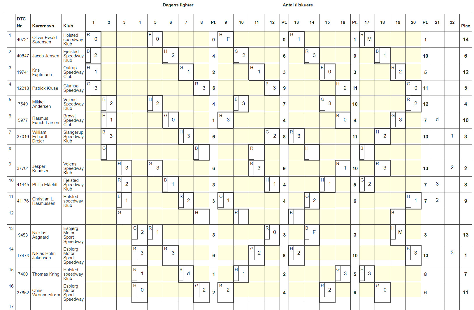- 2 Jesper Knudsen Vojens 13p +2