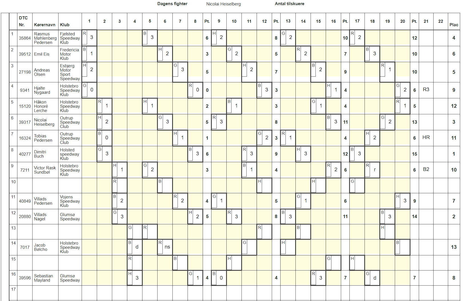 - 4 Mikkel Andersen Vojens 12p